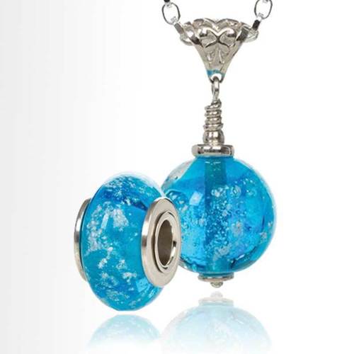 This bead is made from a light sea green colour glass and is beautiful with the ashes inside, its the perfect keepsake to remember someone special.