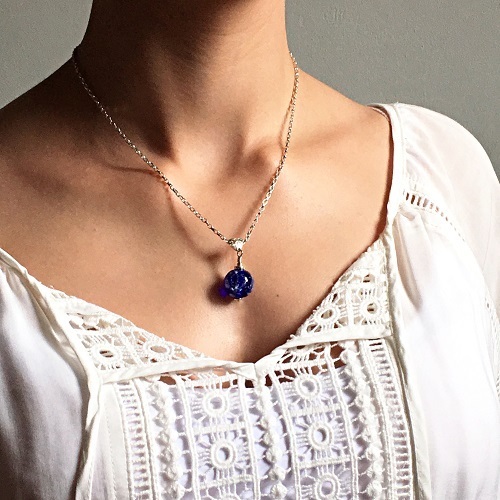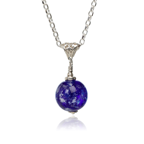 This Cremation Glass Pendant is made from a deep Blue Murano Glass and Sterling Silver,