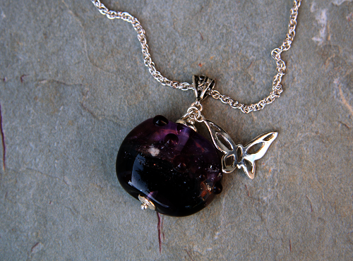 It comes with a cute Sterling Silver Butterfly Charm and a sprinkling of raised glass dots making this Cremation Pendant a lovely tactile piece.