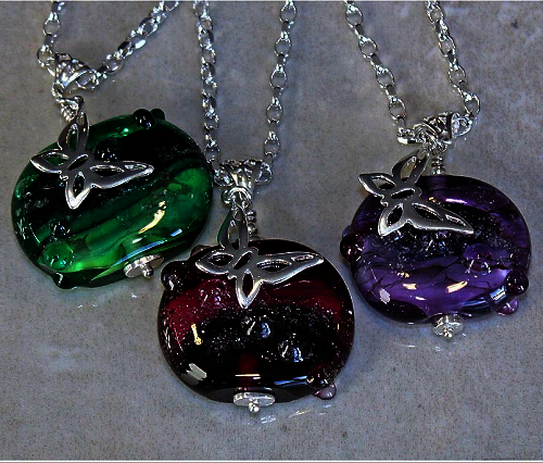 Blackberries were the influences for this beautiful cremation glass Pendant, made in blends of complimenting Purple shades.