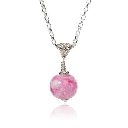 like the flowers this pendant has a blend of swirly soft pinks for that more feminine look.